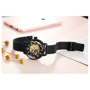Esta peça é a união perfeita entre estilo arrojado e engenharia de precisão. Com um visual totalmente preto e mostrador dourado com detalhes em rosê, este relógio exala sofisticação e personalidade. Indicado para quem valoriza peças únicas que se destacam por onde passam.