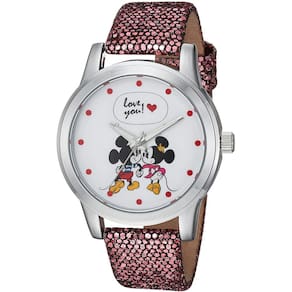Acompanhe o tempo com este Relógio Casual Feminino da Disney oficialmente licenciado pela Ewatchfactory em seu pulso. O relógio exibe arte do seu personagem favorito da Disney no rosto, e foi projetado com mãos rotuladas de "hora" e "minuto" para ajudar os jovens a aprender a dizer o tempo. Este relógio clássico tem um acabamento de aço polido e fosco e um movimento de precisão do Japão para manutenção de tempo precisa e uma garantia de fabricante de 1 ano.