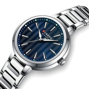 Feito com um movimento de quartzo e preciso, seu visual é complementado por uma pulseira de aço inoxidável durável, que confere um toque de robustez e estilo ao seu pulso. Com resistência à água até 3 Bar, você pode mantê-lo no pulso sem preocupações enquanto lava as mãos ou durante chuvas leves. Explore o luxo acessível com este relógio que não compromete a qualidade, ao mesmo tempo que reflete a sua personalidade única e sofisticada.