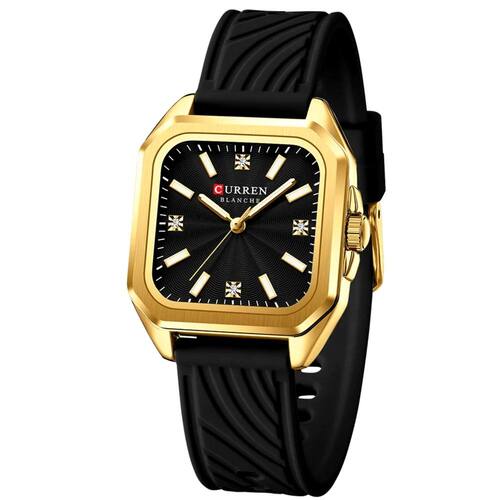 Este relógio é a personificação do minimalismo chique, com uma silhueta quadrada que chama a atenção pela sua simplicidade refinada. A pulseira de silicone oferece conforto inigualável para uso prolongado, enquanto o movimento de quartzo garante precisão impecável. Perfeito para mulheres que valorizam a estética clean e a praticidade em um único acessório, este relógio é um must-have para complementar seu guarda-roupa. Um item essencial para quem busca um visual contemporâneo e funcional.