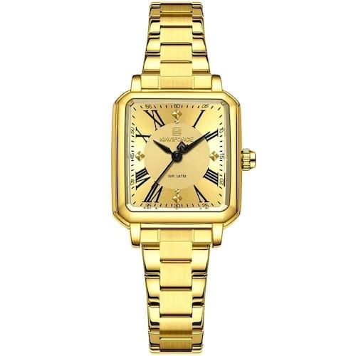 [Design Inovador:] Com um formato retangular único, o relógio destaca-se em qualquer look, valorizando ainda mais seu estilo pessoal.