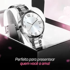 Relogio Feminino Prata Aço Inox + Caixa + Pulseira Pandora Kit Feminino Orizom Maria - Relógio Analógico + Pulseira Estilo Pandora + Caixa Premium Encante-se com a delicadeza do Relógio Feminino Analógico Orizom Maria. Com formato redondo e diâmetro de aproximadamente 3,5 cm, o modelo Maria possui mostrador prata e maquinário todo em aço inoxidável, garantindo durabilidade e sofisticação. A pulseira também é confeccionada em aço inoxidável prata, proporcionando um visual elegante e moderno.