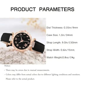 Material: Metal e couro Cor: Dourado e preto Comprimento do relógio: Aproximadamente 24 cm Não acompanha caixa Não é a prova d'água