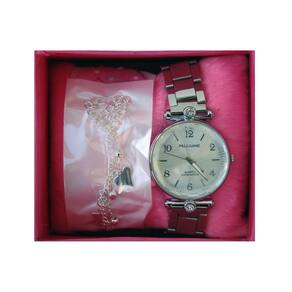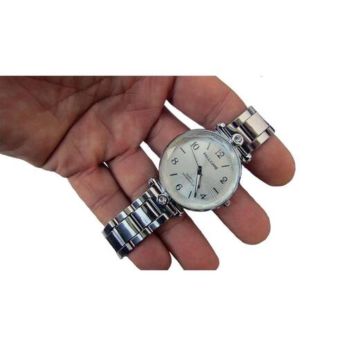 Mostrador com Fundo Prateado enraiado. Especificações Técnicas: Material da Pulseira: Aço Inoxidável de cor Prata Material da Caixa: Liga de Metal, Mecanismo: Quartzo Resistente a agua, Não é A PROVA D'AGUA.
