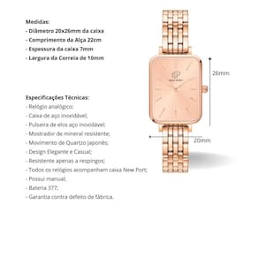 Descubra a Coleção Milano, onde o clássico encontra a modernidade com um toque sofisticado. Cada peça foi cuidadosamente desenhada para oferecer uma elegância discreta e versatilidade incomparável, ideal tanto para ocasiões casuais quanto para eventos mais formais. O Kit apresenta o Relógio New Port Venezia Gold Rosé 26mm, uma verdadeira obra-prima de requinte. Com sua luxuosa pulseira de metal com elos ouro rosé meticulosamente trabalhados, este relógio destaca-se pela transição suave e harmoniosa entre a caixa e o fecho. Seu bracelete rosé gold em aço inoxidável, clássico e refinado, foi cuidadosamente projetado para complementar a beleza minimalista e atemporal dos nossos relógios casuais. Deixe-se envolver pelo charme e pela precisão de um design que redefine o que significa estar na moda. O New Port Venezia Ouro Rosé é mais do que um acessório, é uma afirmação de estilo e sofisticação. A pulseira é de fácil ajuste e se adapta bem a todos os pulsos. Medidas Relógio: - Diâmetro 20x26mm da caixa - Comprimento da Alça 22cm - Espessura da caixa 7mm - Largura da Correia de 10mm