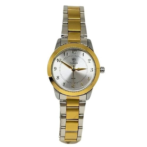 Relógio Feminino Relógio Tuguir Analógico TG175 Dourado e Prata Relógio Feminino Relógio Tuguir Analógico TG175 Dourado e Prata Marca: Tuguir Categoria: Analógico Analógico: Sim 1 Horário Ponteiros Fluorescentes: Não Digital: Não Calendário: Não Despertador: Não Mostra o Dia da Semana: Não Mostra o Dia do Mês: Não Cronômetro: Não Contador Regressivo: Não Luz: Não Resistente à Água: 5 ATM Pode ser Utilizado para nadar no raso, por pouco tempo submerso - Respingos: Sim - Chuva: Sim - Lavar Carro: Sim - Lavar Louça: Sim - Natação: Sim - Mergulho: Não Característica do Vidro: Cristal Mineral Tipo de Fecho: Dobrável com Botão Cor da Caixa: Dourado Material da Caixa: Metal Banho IP Formato da Caixa: Redondo Diâmetro da Caixa: 28,00 mm Espessura da Caixa: 8,50 mm Cor da Pulseira: Prata Material da Pulseira: Aço Largura da Pulseira: 12,00 mm Comprimento Máximo da Pulseira: 125,00 mm Alimentação: Selecione Peso Líquido: 0,050 Kg Modelo: TG175 Cor Predominante: Dourado Cor Diferencial: Prata : 12 Meses Conteúdo da Embalagem: 01 Relógio 01 Embalagem 01 Termo de Ean: 7891368316109