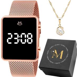 Relogio Feminino Silicone Aço Digital + Colar Perola + Caixa Quadrado Silicone Pulseira Ajustável Surpreenda a Maria da sua vida com o incrível Kit Orizom Maria Relógio Digital Feminino com Colar e Caixa Premium! Este conjunto elegante é perfeito para datas especiais ou para mostrar seu carinho com muito bom gosto. Detalhes do Produto: Relógio Digital Feminino Orizom Maria: Estilo moderno, visor quadrado de fácil leitura, acabamento em rosê e pulseira de silicone ajustável. Colar Feminino com Pingente: Confeccionado em aço inoxidável banhado em rosê, com pingente de pedra de pérola, proporcionando um toque de sofisticação. Caixa Premium Orizom Maria: Embalagem especial para valorizar o presente, garantindo segurança e um visual refinado.