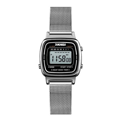 Relógio Feminino Skmei Digital 1901 Prata Marca: SkmeiCategoria: DigitalAnalógico: NãoDigital: Sim (1 Horário)Calendário: SimDespertador: SimMostra o Dia da Semana: SimMostra o Dia do Mês: SimCronômetro: SimContador Regressivo: NãoLuz: SimCor da Iluminação: VerdeResistente à Água: 3 ATM (Resiste a imersões breves)- Respingos: Sim- Chuva: Sim- Lavar Carro: Sim- Lavar Louça: Sim- Natação: Não- Mergulho: NãoCaracterística do Vidro: Cristal MineralTipo de Fecho: GanchoCor da Caixa: PrataMaterial da Caixa: Metal Banho IPFormato da Caixa: QuadradoComprimento da Caixa: 24,20 (mm)Largura da Caixa: 25,70 (mm)Espessura da Caixa: 9,20 (mm)Cor da Pulseira: PrataMaterial da Pulseira: AçoLargura da Pulseira: 12,30 (mm)Comprimento Máximo da Pulseira: 210,00 (mm)Alimentação: Bateria InternaPeso Líquido: 0,040 KgModelo: 1901Cor Predominante: PrataGarantia: 12 MesesConteúdo da Embalagem: 01 Relógio 01 Embalagem 01 Termo de Garantia