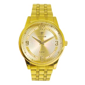Relógio Feminino Tuguir Analógico 2132 DouradoMarca: Tuguir Categoria: Analógico Analógico: Sim (1 Horário) Ponteiros Fluorescentes: Selecione Digital: Não Luz: SelecioneResistente à Água: 5 ATM (Pode ser utilizado para nadar no raso, por pouco tempo submerso) - Respingos: Sim - Chuva: Sim - Lavar Carro: Sim - Lavar Louça: Sim - Natação: Sim - Mergulho: Não Característica do Vidro: Cristal Mineral Tipo de Fecho: Dobrável com Botão Cor da Caixa: Dourado Material da Caixa: Metal Banho IP Formato da Caixa: Redondo Diâmetro da Caixa: 39,00 (mm) Espessura da Caixa: 11,00 (mm) Cor da Pulseira: Dourado Material da Pulseira: Aço Largura da Pulseira: 17,50 (mm) Comprimento Máximo da Pulseira: 260,00 (mm) Alimentação: Bateria Interna Peso Líquido: 0,080 Kg Modelo: 2132 Cor Predominante: Dourado Garantia: 12 MesesConteúdo da Embalagem: 01 Relógio 01 Embalagem 01 Termo de Garantia