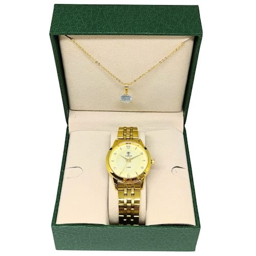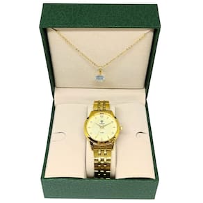 Marca: Tuguir Categoria: Analógico Analógico: Sim (1 Horário) Ponteiros Fluorescentes: Não Digital: Não Luz: Selecione Resistente à Água: 5 ATM - Respingos: Sim - Chuva: Sim - Lavar Carro: Sim - Lavar Louça: Sim - Natação: Sim - Mergulho: Não Característica do Vidro: Cristal Mineral Tipo de Fecho: Dobrável com Botão Cor da Caixa: Dourado Material da Caixa: Metal Banho IP Formato da Caixa: Redondo Diâmetro da Caixa: 32,00 (mm) Espessura da Caixa: 9,00 (mm) Cor da Pulseira: Dourado Material da Pulseira: Aço Largura da Pulseira: 13,50 (mm) Comprimento Máximo da Pulseira: 250,00 (mm) Alimentação: Bateria Interna Peso Líquido: 0,060 Kg Modelo: 2136 Cor Predominante: Dourado Cor Diferencial: Bege Garantia: 12 Meses
