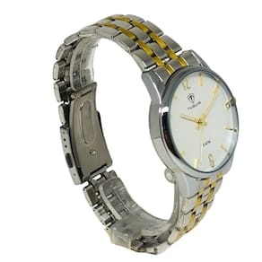 Relógio Feminino Tuguir ógico 2139 Prata e Dourado Relógio Feminino Tuguir ógico 2139 Prata e Dourado Marca: Tuguir Categoria: ógico ógico: Sim 1 Horário Ponteiros Fluorescentes: Não Digital: Não Luz: Selecione Resistente à Água: 5 ATM Pode ser para nadar no raso, por pouco tempo submerso - Respingos: Sim - Chuva: Sim - Lavar Carro: Sim - Lavar Louça: Sim - Natação: Sim - Mergulho: Não Característica do Vidro: Cristal Mineral Tipo de Fecho: Dobrável com Botão Cor da Caixa: Prata Material da Caixa: Metal Banho IP Formato da Caixa: Redondo Diâmetro da Caixa: 39,00 mm Espessura da Caixa: 11,00 mm Cor da Pulseira: Prata Material da Pulseira: Aço Largura da Pulseira: 17,50 mm Comprimento Máximo da Pulseira: 270,00 mm Alimentação: Bateria Interna Peso Líquido: 0,080 Kg Modelo: 2139 Cor Predominante: Prata Cor Diferencial: Dourado : 12 Meses Conteúdo da Embalagem: 01 Relógio 01 Embalagem 01 Termo de Marca: Não Informado