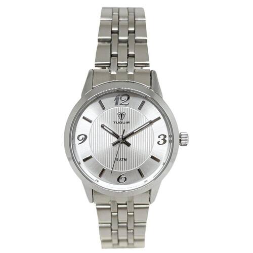 Relógio Feminino Tuguir ógico 9182A Prata Relógio Feminino Tuguir ógico 9182A Prata Marca: Tuguir Categoria: ógico ógico: Sim 1 Horário Ponteiros Fluorescentes: Selecione Digital: Não Luz: Selecione Resistente à Água: 5 ATM Pode ser para nadar no raso, por pouco tempo submerso - Respingos: Sim - Chuva: Sim - Lavar Carro: Sim - Lavar Louça: Sim - Natação: Sim - Mergulho: Não Característica do Vidro: Cristal Mineral Tipo de Fecho: Dobrável com Botão Cor da Caixa: Prata Material da Caixa: Metal Banho IP Formato da Caixa: Redondo Diâmetro da Caixa: 32,00 mm Espessura da Caixa: 9,00 mm Cor da Pulseira: Prata Material da Pulseira: Aço Largura da Pulseira: 13,50 mm Comprimento Máximo da Pulseira: 260,00 mm Alimentação: Bateria Interna Peso Líquido: 0,060 Kg Modelo: 9182A Cor Predominante: Prata : 12 Meses Conteúdo da Embalagem: 01 Relógio 01 Embalagem 01 Termo de Marca: Não Informado
