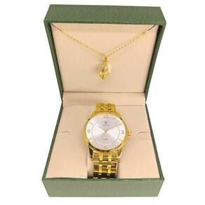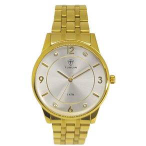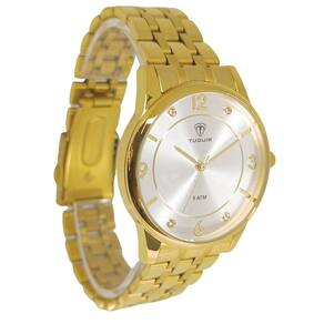 Relógio Feminino Tuguir Analógico 9182D Dourado e BrancoMarca: Tuguir Categoria: Analógico Analógico: Sim (1 Horário) Ponteiros Fluorescentes: Selecione Digital: Não Luz: SelecioneResistente à Água: 5 ATM (Pode ser utilizado para nadar no raso, por pouco tempo submerso) - Respingos: Sim - Chuva: Sim - Lavar Carro: Sim - Lavar Louça: Sim - Natação: Sim - Mergulho: Não Característica do Vidro: Cristal Mineral Tipo de Fecho: Dobrável com Botão Cor da Caixa: Dourado Material da Caixa: Metal Banho IP Formato da Caixa: Redondo Diâmetro da Caixa: 39,00 (mm) Espessura da Caixa: 11,00 (mm) Cor da Pulseira: Dourado Material da Pulseira: Aço Largura da Pulseira: 17,50 (mm) Comprimento Máximo da Pulseira: 270,00 (mm) Alimentação: Bateria Interna Peso Líquido: 0,080 Kg Modelo: 9182D Cor Predominante: Dourado Cor Diferencial: Branco Garantia: 12 MesesConteúdo da Embalagem: 01 Relógio 01 Embalagem 01 Termo de Garantia