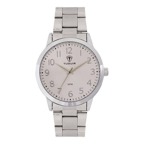 Relógio Feminino Tuguir Analógico TG116 - Prata Relógio Feminino Tuguir Analógico TG116 - Prata Marca: Tuguir Categoria: Analógico Analógico: Sim (1 Horário) Ponteiros Fluorescentes: Não Digital: Não Calendário: Não Despertador: Não Mostra o Dia da Semana: Não Mostra o Dia do Mês: Não Cronômetro: Não Contador Regressivo: Não Luz: Não Resistente à Água: 3 ATM (Resiste a imersões breves) - Respingos: Sim - Chuva: Sim - Lavar Carro: Sim - Lavar Louça: Sim - Natação: Não - Mergulho: Não Característica do Vidro: Acrílico Tipo de Fecho: Dobrável com Botão Cor da Caixa: Prata Material da Caixa: Metal (Alloy) Formato da Caixa: Redondo Diâmetro da Caixa: 40,00 (mm) Espessura da Caixa: 8,40 (mm) Cor da Pulseira: Prata Material da Pulseira: Metal Largura da Pulseira: 18,00 (mm) Comprimento Máximo da Pulseira: 220,00 (mm) Alimentação: Bateria Interna Peso Líquido: 0,075 Kg Modelo: TG116 Cor Predominante: Prata Garantia: 12 Meses