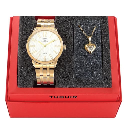 Marca: Tuguir Categoria: ógico ógico: Sim 1 Horário Ponteiros Fluorescentes: Não Digital: Não Calendário: Não Despertador: Não Mostra o Dia da Semana: Não Mostra o Dia do Mês: Não Cronômetro: Não Contador Regressivo: Não Luz: Não Resistente à Água: 5 ATM Pode ser para nadar no raso, por pouco tempo submerso - Respingos: Sim - Chuva: Sim - Lavar Carro: Sim - Lavar Louça: Sim - Natação: Sim - Mergulho: Não Característica do Vidro: Cristal Mineral Tipo de Fecho: Dobrável com Botão Cor da Caixa: Prata Material da Caixa: Metal Banho IP Formato da Caixa: Redondo Diâmetro da Caixa: 39,00 mm Espessura da Caixa: 11,50 mm Cor da Pulseira: Prata Material da Pulseira: Aço Largura da Pulseira: 18,00 mm Comprimento Máximo da Pulseira: 220,00 mm Alimentação: Bateria Interna Peso Líquido: 0,084 Kg Modelo: W2124 Cor Predominante: Dourado Cor Diferencial: Prata : 12 Meses Conteúdo da Embalagem: 01 Relógio 01 Embalagem 01 Termo de Marca: Não Informado Ean: 7891368312361