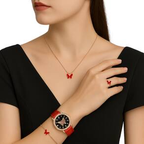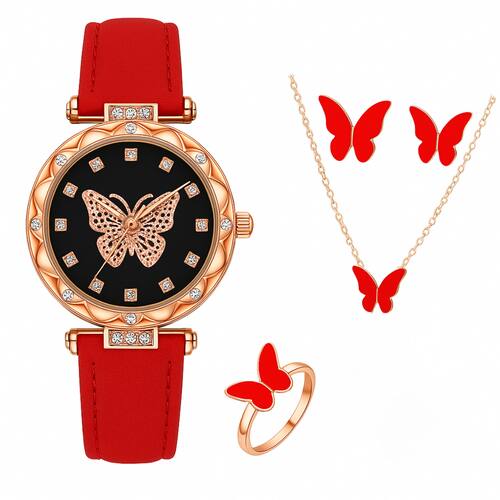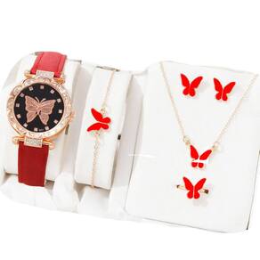 Conteúdo do pacote: 1 relógio, 1 colar, 1 pulseira, 1 par de brincos e 1 anél.