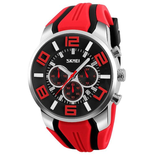 Relógio masculino Big Face com cronógrafo Relógios analógicos de quartzo Relógio colorido impermeável com vermelho, verde, preto, laranja, azul