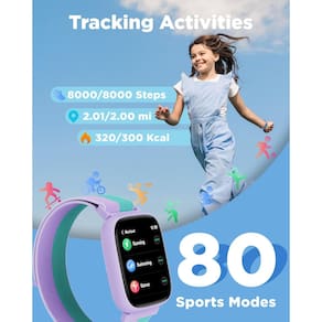 - Monitoramento abrangente da saúde: monitora a frequência cardíaca em tempo real e rastreia os padrões de sono para promover o bem-estar do seu filho.