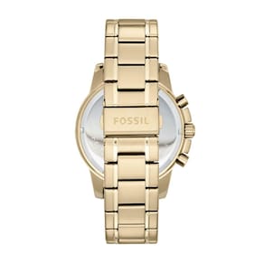 Fossil Relógio social masculino Dean com mostrador cronógrafo e pulseira de aço inoxidável, Dourado, FS4867IE - Inspirando-se no modernismo de meados do século, as linhas simples e a forma clássica de Dean produzem um efeito sutil, mas visualmente impressionante. Com uma caixa e pulseira de aço inoxidável dourado, este cronógrafo versátil pode levar você do dia à noite com facilidade. - Caixa e movimento: caixa de 45 mm, largura de banda de 22 mm, lente de cristal mineral endurecido resiste a arranhões, movimento preciso de quartzo com mostrador analógico de cronógrafo e janela de data, três submostradores para rastrear minutos, segundos e tempo de 24 horas, funcionalidade de cronômetro, importado. - Mostrador: Caixa redonda de aço inoxidável dourado, com mostrador dourado e detalhes. - Pulseira de relógio: pulseira dourada de aço inoxidável durável com fecho dobrável seguro; os elos podem ser removidos para um ajuste personalizado; intercambiáveis com todas as pulseiras Fossil de 22 mm. - Resistente à água: até 50 m: pode ser utilizado para curtos períodos de natação recreativa e banho, mas não para mergulho ou snorkeling; 5 ATM.