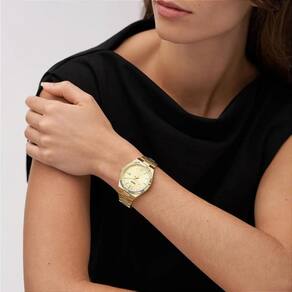 Sua pulseira em aço dourado possui acabamento polido e escovado, garantindo conforto no uso diário e um encaixe perfeito para diferentes tamanhos de pulso. O modelo possui resistência à água de 3 ATM (30 metros), sendo adequado para o dia a dia, evitando submersão.