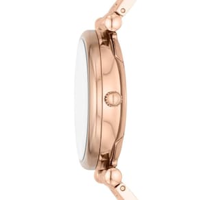 Super sofisticado e variado, a linha Carlie é um grande sucesso! Com banho rosé, esse relógio analógico também conta com uma caixa de aço redonda de 35mm, resistência de 5ATM e pulseira free fall.