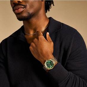 Gênero: Masculino Tipo de Energia: Quartz Resistência a Água: 50 metros Cor da Caixa: Dourado Cor do mostrador: Verde Cor da Pulseira: Dourado Material da pulseira: Aço inoxidável Tipo de Vidro: Cristal Mineral Largura da Caixa: 42mm de diâmetro Espessura da Caixa: 11mm Garantia: 02 anos.