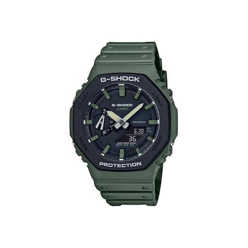 Este novo modelo combina cores práticas e utilitárias entre as molduras, faces e pulseiras, que vão bem com a moda urbana e criam um visual autêntico perfeitamente adaptável a atividades e estilos variados. A estampa camuflada da moldura do modelo GA-2100SU cria novos designs e um aspecto fantástico.