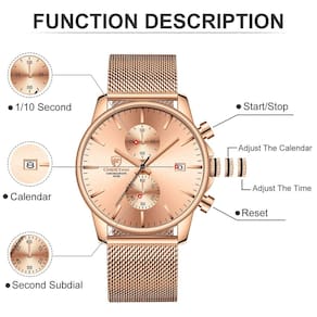 Descrição do produto Nosso design totalmente novo, a capa redonda atende à próxima geração de clássicos, o que torna nosso relógio com estilo de moda casual para o seu uso diário. Artesanato de aço macio, não arranha seu pulso ou tecido, combina com qualquer roupa e qualquer ocasião. Você também pode ajustar o comprimento da pulseira de acordo com sua própria escala, nós fornecemos o ajustador de pulseira juntos. Além disso, escolher nossos relógios não é apenas para um relógio, o que significa uma melhor qualidade e pós-serviços também. Características do produto **Movimento: relógio multifuncional com funcionalidade de cronômetro, o movimento do cronógrafo é normalmente integrado em dois sub-olhos separados por 1/10 segundos e segundos. **Resistente à água até 30 m: adequado para curtos períodos de natação e banho recreativos, mas não para mergulho ou snorkel. **O mostrador do relógio é muito claro, bonito e grande. Vidro de cristal mineral Hardlex. **Pulseira de aço de metal com fivela de pino para se ajustar ao seu pulso, nossa alça de malha de alta qualidade é conhecida por sua suavidade e capacidade de ficar bem ao longo do tempo. **Este relógio é encantador para todas as ocasiões, como turismo, mesa, deslocamento diário ou festa. Parâmetros Forma da caixa: redonda Material: Aço inoxidável Peso líquido: 105 g. Espessura da caixa: 12,78 mm. Diâmetro da caixa: 42 mm. Largura da pulseira: 22 mm. Comprimento da pulseira: 245 mm Nossos serviços - Com 15 dias de recarga, política de substituição de 30 dias e fabricação de 1 ano pós-venda - Se você tiver algum outro problema, sinta-se à vontade para entrar em contato conosco, responderemos imediatamente com sua satisfação. O pacote inclui: 1 relógio de couro de alta qualidade. 1 cartão 1 caixa de presente. - ?Movimento: movimento analógico de quartzo importado japonês e bateria, fornece tempo preciso e corrida a longo prazo. O relógio pode ser utilizado por mais de 1 ano. - ?Material: A pulseira é feita de malha de aço inoxidável, confortável, macia e respirável. Óculos minerais, caixa prateada, adequado para todos os tipos de ocasiões. - ?Cronógrafo esportivo: o submostrador multifuncional pode funcionar, cronógrafo, calendário, segundos de corrida. Fornecer a você uso multifunções. - ?À prova d'água a 3 ATM: este relógio é à prova d'água a 30 m, pode suportar respingos diários ou imersão curta em água, mas não nadar e tomar banho, mergulho ou snorkel. - ?Serviço pós-venda: cada produto tem 1 ano de serviço pós-venda. Se você tiver alguma dúvida sobre o produto, comigo imediatamente e lhe daremos uma solução satisfatória.