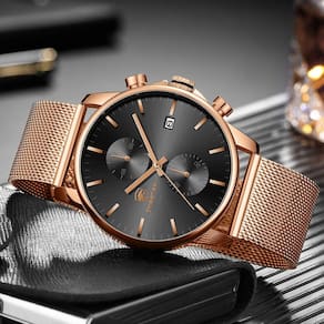 Descrição do produto: Nosso design novo, a caixa redonda atende à próxima geração de clássicos, o que torna nosso relógio um estilo casual de moda para o seu uso diário. Artesanato de aço liso, não arranha seu pulso ou pano, combina muito bem com qualquer roupa e qualquer ocasião. Você também pode ajustar o comprimento da pulseira de acordo com sua própria escala, nós fornecemos o ajustador de pulseira juntos. Além disso, escolher nossos relógios não é apenas para um relógio, o que significa uma melhor qualidade e serviços pós-venda também. Características do produto: **Movimento: relógio multifuncional com funcionalidade de cronômetro, o movimento do cronógrafo é normalmente integrado em dois sub-olhos separados por 1/10 segundos e segundos. **Resistente à água até 30 m: adequado para períodos curtos de natação recreativa e banho, mas não para mergulho ou snorkeling. **A face do relógio é muito clara, bonita e grande. Vidro de cristal mineral Hardlex. **Pulseira de aço de metal com fivela de pino para caber no seu pulso, nossa pulseira de malha de alta qualidade é conhecida por sua suavidade e capacidade de ficar bonita ao longo do tempo. **Este relógio é encantador para todas as ocasiões, como turismo, mesa, deslocamento diário ou festa. Parâmetros Forma da caixa: redonda Material: aço inoxidável Peso líquido: 105 g. Espessura da caixa: 12,78 mm/0,5 pol. Diâmetro da caixa: 42 mm. Largura da pulseira: 22 mm. Comprimento da pulseira: 245 mm. Nossos serviços -- Com 15 dias de cobrança, política de substituição de 30 dias e serviço pós-venda de 1 ano de fabricação - Se você tiver outros problemas, sinta-se à vontade para entrar em contato conosco, responderemos imediatamente com sua satisfação. A embalagem inclui: 1 relógio de couro de alta qualidade. 1 cartão 1 caixa de presente. - ? Movimento: movimento analógico de quartzo importado japonês e bateria, fornecem tempo preciso e funcionamento de longo prazo. O relógio pode ser utilizado por mais de 1 ano. - Material: a pulseira é feita de malha de aço inoxidável, confortável, macia e respirável. Óculos minerais, caixa de prata, adequado para todos os tipos de ocasiões. - Cronógrafo esportivo: o submostrador multifuncional pode funcionar, cronógrafo, calendário, executar segundos. Oferece uso multifuncional. - À prova d'água de 3 ATM: este relógio é à prova d'água de 30 m, pode suportar respingos diários ou imersão curta em água, mas não para nadar e tomar banho, mergulho ou snorkeling. - Serviço pós-venda: cada produto tem 1 ano de serviço pós-venda. Se você tiver alguma dúvida sobre o produto, comigo imediatamente e lhe daremos uma solução satisfatória.