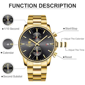 - ?Cronógrafo esportivo: o submostrador multifuncional pode funcionar, cronógrafo, calendário, segundos de corrida. Fornecer a você uso multifunções.