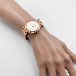Características Formato do Relógio: Redondo Composição do Vidro: Cristal mineral Material da Caixa: Aço Inox Cor da Caixa: Rosê Cor do mostrador: Branco Material da Pulseira: Aço Inox Cor da Pulseira: Rosê Mecanismo: Analógico Quartz