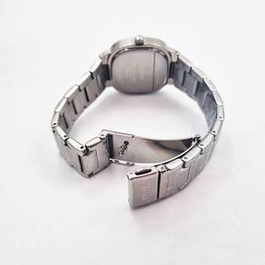 Características Formato do Relógio: Retangular Composição do Vidro: Cristal mineral Material da Caixa: Aço Inox Cor da Caixa: Prata Cor do mostrador: Branco, Prata Material da Pulseira: Aço Inox Cor da Pulseira: Prata Mecanismo: Analógico Quartz