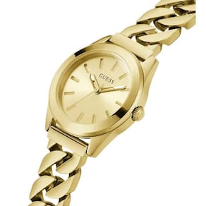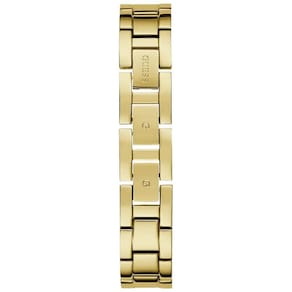 O destaque está na pulseira: em aço inoxidável dourado, ela traz elos largos no estilo corrente, reforçando a identidade ousada e marcante da Guess, além de proporcionar conforto e firmeza no uso.