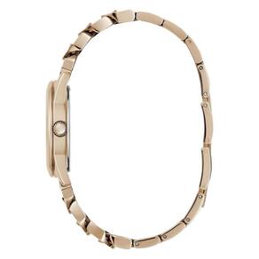 A pulseira em aço inoxidável no tom rosé é composta por elos largos no estilo corrente, um dos grandes diferenciais deste modelo, que une robustez e sofisticação, tornando o relógio uma peça de impacto fashion.