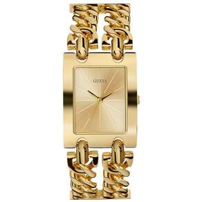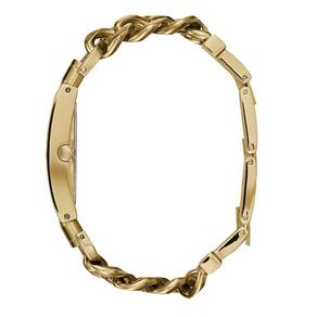 Características Formato do Relógio: Retangular Composição do Vidro: Cristal mineral Material da Caixa: Metal Cor da Caixa: Dourado Cor do mostrador: Dourado Material da Pulseira: Aço Inox Cor da Pulseira: Dourado Mecanismo: Analógico Quartz