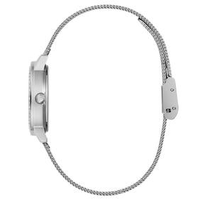 Um dos diferenciais está na pulseira mesh de aço inoxidável prateado, que proporciona conforto, ajuste perfeito e um visual contemporâneo. Este design garante que o relógio seja facilmente combinado tanto com produções casuais quanto formais.