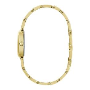 Movimento: Quartzo (alimentado a bateria) Tipo de Mostrador: Analógico Formato da Caixa: Redonda Diâmetro da Caixa: 26 mm Material do Vidro: Cristal mineral Cor do Mostrador Dourado Material da Pulseira/Bracelete: Aço inoxidável dourado Largura da Pulseira/Lug Width: 10 mm (no site oficial) Resistência à Água: 30 metros (3 ATM) Garantia: 2 anos pela fabricante Guess