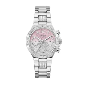 Mecanismo: Analógico (Quartzo) Gênero: Feminino Visor: Prata Vidro: Cristal mineral Resistente à água: 50m Características: Pulseira e caixa em aço inoxidável prata, com detalhes em cristais Diâmetro da caixa: 38mm Tipo de fecho: Fivela Simples Garantia: 1 ano pela fabricante Guess