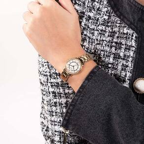 Mecanismo: Analógico (Quartzo) Gênero: Feminino Visor: Branco Vidro: Cristal mineral Prova d'água: 30m Características: caixa com cristais cravejados. Diâmetro da caixa: 28 mm Tipo de fecho: Gancho Garantia: 1 ano pela fabricante Guess