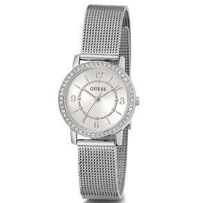 Relógio Guess Feminino Ladies Silver Tone GW0534L1 Prata Guess, a marca Californiana criadas para pessoas que gostam de luxo e elegância Os Relógios Guess possuem design próprio que realçam sua beleza e seu lifestyle. A linha Guess Ladies Dress tem o conceito de trazer o brilho e a delicadeza da mulher moderna. Especificações Técnicas Mecanismo: Analógico Quartzo Gênero: Feminino Visor: branco Vidro: Cristal mineral Prova d'água: 30m Características: pulseira em aço inoxidável prata, caixa com cristais cravejados. Diâmetro da caixa: 28mm Tipo de fecho: Fivela simples : 1 ano pela fabricante Guess Ean: 7909669167532