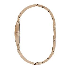 Com caixa retangular de 24x29mm, este modelo apresenta mostrador clean no mesmo tom rosé, com índices lineares sutis que reforçam a estética minimalista da peça.
