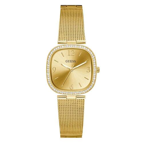 Fundada no estado americano da Califórnia, em 1981, a Guess surgiu na Indústria da moda com a produção de jeans e rapidamente se tornou uma das Marcas fashion mais admiradas e desejadas do mundo. Com a credibilidade de uma marca internacional, a Guess oferece relógios com Design e cores inovadoras, produzidos com materiais de alta qualidade e que Ditam a tendência de moda mundial, tendo seus relógios vendidos em mais de 70 países. Especificações Pulseira: Aço Cor da pulseira: Dourado Mecanismo: Analógico Diâmetro da caixa mm : 32 Ean: 7909669061601