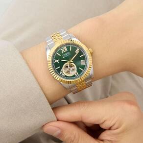 Mecanismo: Automático Gênero: Masculino Visor: Verde Vidro: Cristal mineral Prova d'água: 50m Diâmetro da caixa: 42 mm Garantia: 1 ano pela fabricante Guess