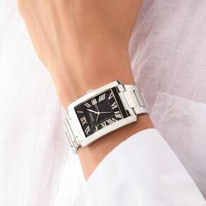 Relógio Guess Masculino Clyde GW0896G1 Prata O Guess Clyde GW0896G1 possui design sofisticado, ideal para quem busca um visual moderno e elegante. A caixa e a pulseira em aço inoxidável prata conferem um look clean que combina tanto com roupas casuais quanto formais. O mostrador preto texturizado oferece contraste refinado, com índices em algarismos romanos que trazem charme clássico ao modelo. Movimento a quartzo garante precisão e baixa manutenção, enquanto o vidro mineral protege contra riscos leves. A resistência à água de até 30 m 3 ATM permite uso diário sem preocupações com respingos ou uma eventual chuva. Especificações Técnicas Mecanismo: Analógico Quartzo Gênero: masculino Visor: preto Vidro: Cristal mineral Prova d'água: 30m Formato da caixa: Retangular Diâmetro da caixa: 34mm Largura da Pulseira: 25mm Tipo de fecho: Fivela simples Peso: 120g : 1 ano pela fabricante Guess