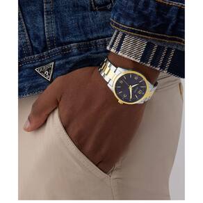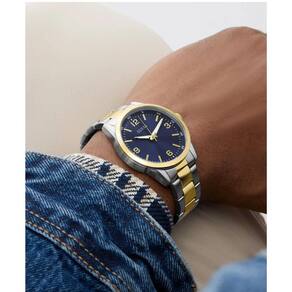 Relógio Guess Masculino Easton GW0965G4 Bicolor O Guess GW0965G4 une estilo e versatilidade em um relógio bicolor moderno. Com caixa prateada de 40 mm e pulseira de aço inoxidável combinando prata e dourado, ele se destaca no pulso com elegância discreta. O mostrador azul escuro completa o design, ideal para quem busca um acessório que combine com qualquer ocasião, do dia a dia a eventos especiais. Resistente à água e com acabamento refinado, é o toque de sofisticação que faltava para seu visual. Especificações Técnicas Mecanismo: Analógico Quartzo Gênero: Masculino Visor: Azul Sunray Vidro: Cristal mineral Prova d'água: 50m Características: Cronógrafo Diâmetro da caixa: 44 mm : 1 ano pela fabricante Guess
