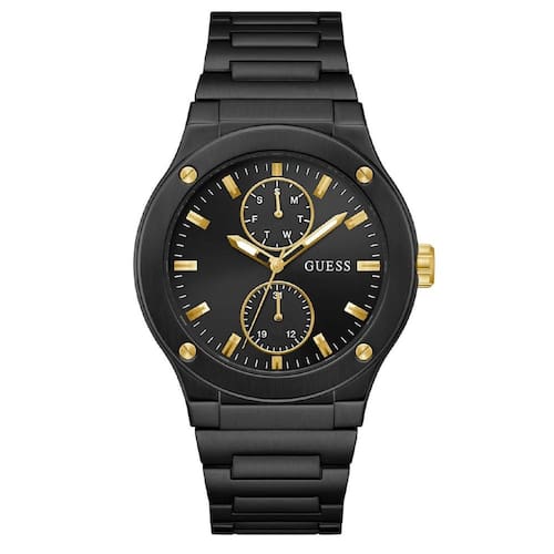 Relógio Guess Masculino Jet GW0795G3 Preto Guess, a marca Californiana criadas para pessoas que gostam de luxo e elegância Os Relógios Guess possuem design próprio que realçam sua beleza e seu lifestyle. A linha Guess Masculino tem o conceito de trazer a sofisticação para o Homem moderno. Especificações Técnicas Mecanismo: Analógico Quartzo Gênero: Masculino Visor: preto Vidro: Cristal mineral Prova d'água: 50m Diâmetro da caixa: 45 mm Pulseira: silicione preto Tipo de fecho: Fivela : 1 ano pela fabricante Guess Marca: Não Informado Ean: 7909669179405