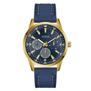 Relógio Guess Masculino Peak GW0964G2 Azul Este relógio esportivo dinâmico combina cores vibrantes com sofisticação, apresentando uma caixa redonda de 44 mm em aço reciclado escovado e polido em tom dourado, combinada com uma pulseira de silicone índigo com costuras chamativas. O mostrador sunray índigo apresenta recursos multifuncionais e adiciona profundidade e dimensão a este design de inspiração atlética. Com resistência à água de 50 metros, este relógio marcante é perfeito para o homem que busca uma sofisticação esportiva que acompanhe seu ritmo. Especificações Técnicas Mecanismo: Analógico Quartzo Gênero: Masculino Visor: Azul Vidro: Cristal mineral Prova d'água: 50m Características: Cronógrafo e pulseira de silicone Diâmetro da caixa: 44 mm : 1 ano pela fabricante Guess Marca: Não Informado Ean: 7909669215912