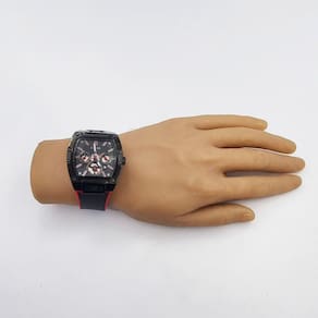 Características Formato do Relógio: Retangular Composição do Vidro: Cristal mineral Material da Caixa: Aço Inox Cor da Caixa: Preto Cor do mostrador: Preto, Vermelho Material da Pulseira: Borracha Cor da Pulseira: Preto, Vermelho Mecanismo: Analógico Multifunção