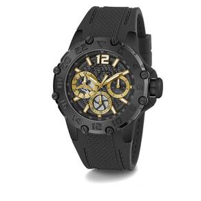 Relógio masculino GUESS de 46 mm - pulseira preta com pulseira preta - pulseira preta de 8 polegadas - caixa preta de 46 mm - mostrador preto - pulseira de silicone - mostrador multifuncional
