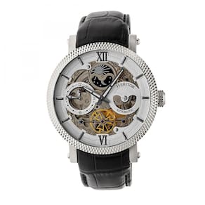 Heritor Relógio automático masculino "Aries Skeleton" de aço inoxidável e couro, cor: preto (modelo: HERHR4404)